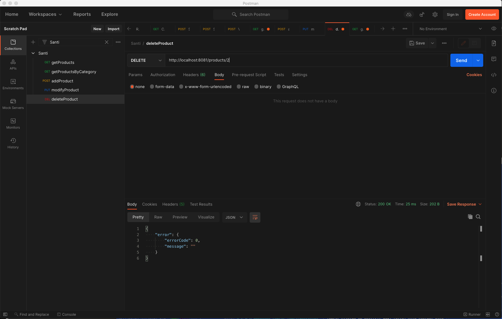 - Eliminar un producto: Método DELELET que elimina un producto existente