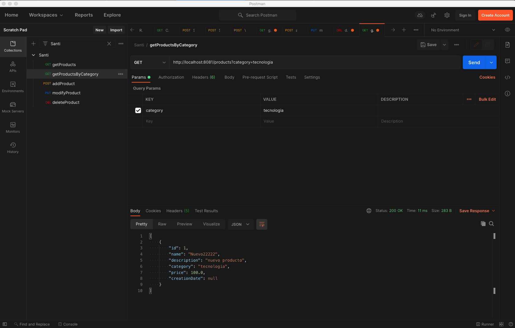 - Obtener todos los productos de una categoría determinada: Método GET que devuelve la colección filtrada por el campo categoria