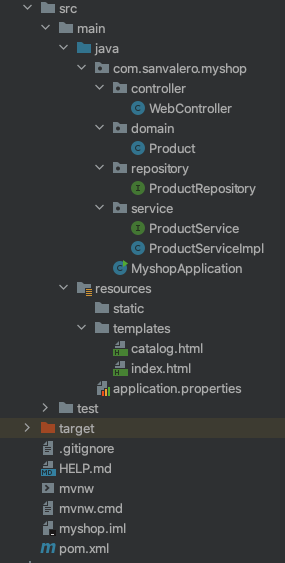 Usaremos myshopuser como usuario y mypassword como usuario y contraseña en el fichero de configuración (application.properties) del proyecto.